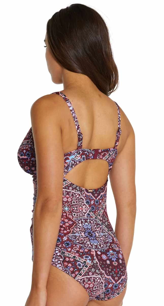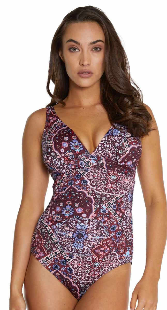 | Baku’s Galapagos E/F cup longline one piece swimsuit features a flattering V neckline, adjustable straps for a customised fit, hidden underwire to lift the bust, keyhole back with secure clip, side boning to keep the bust forward, fully lined. Australian made Fabric: 91% Polyamide, 9% Elastane |