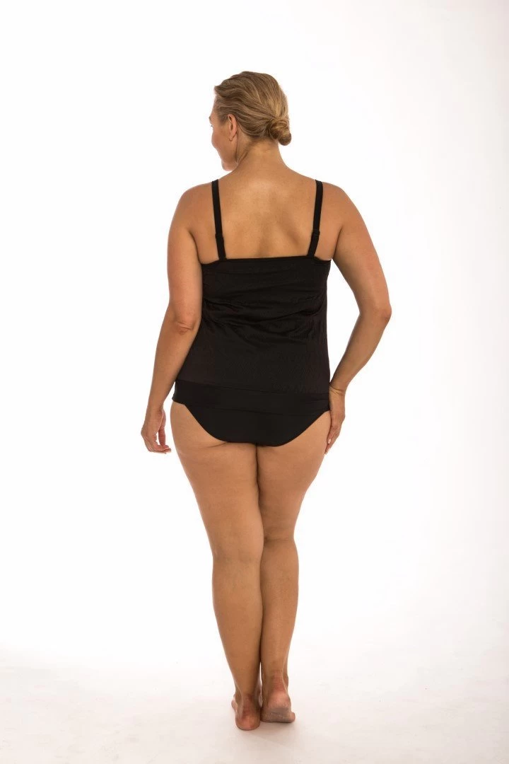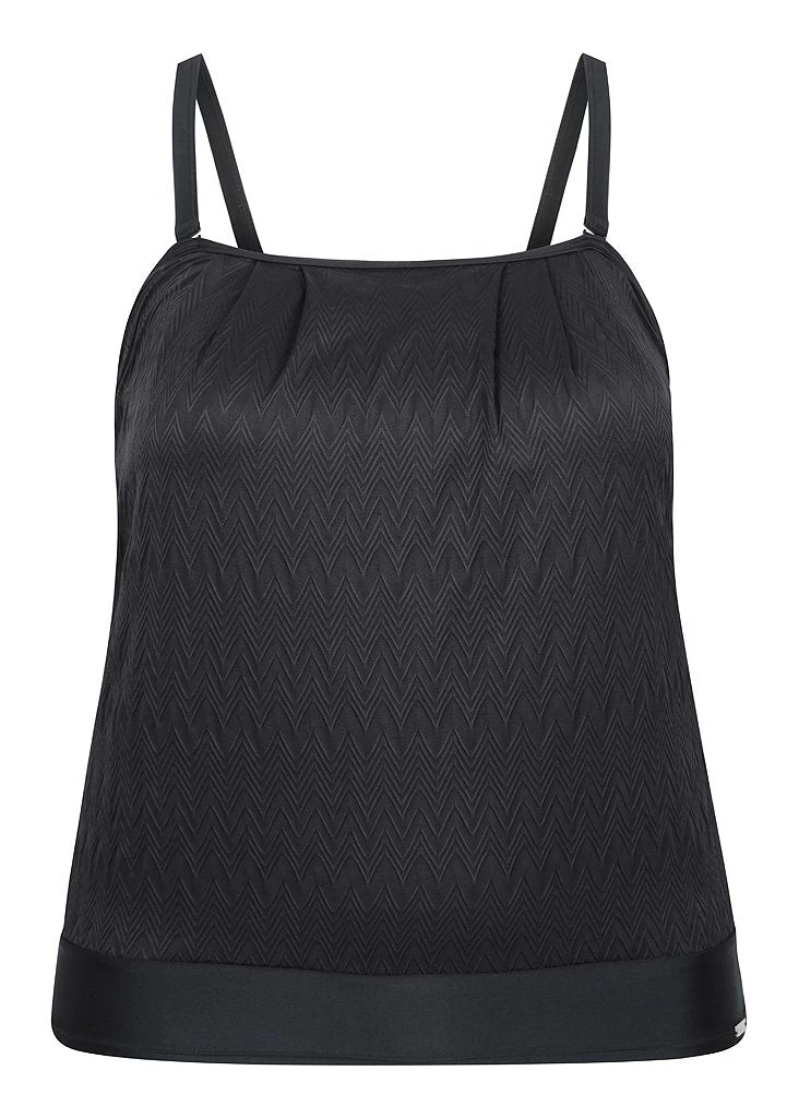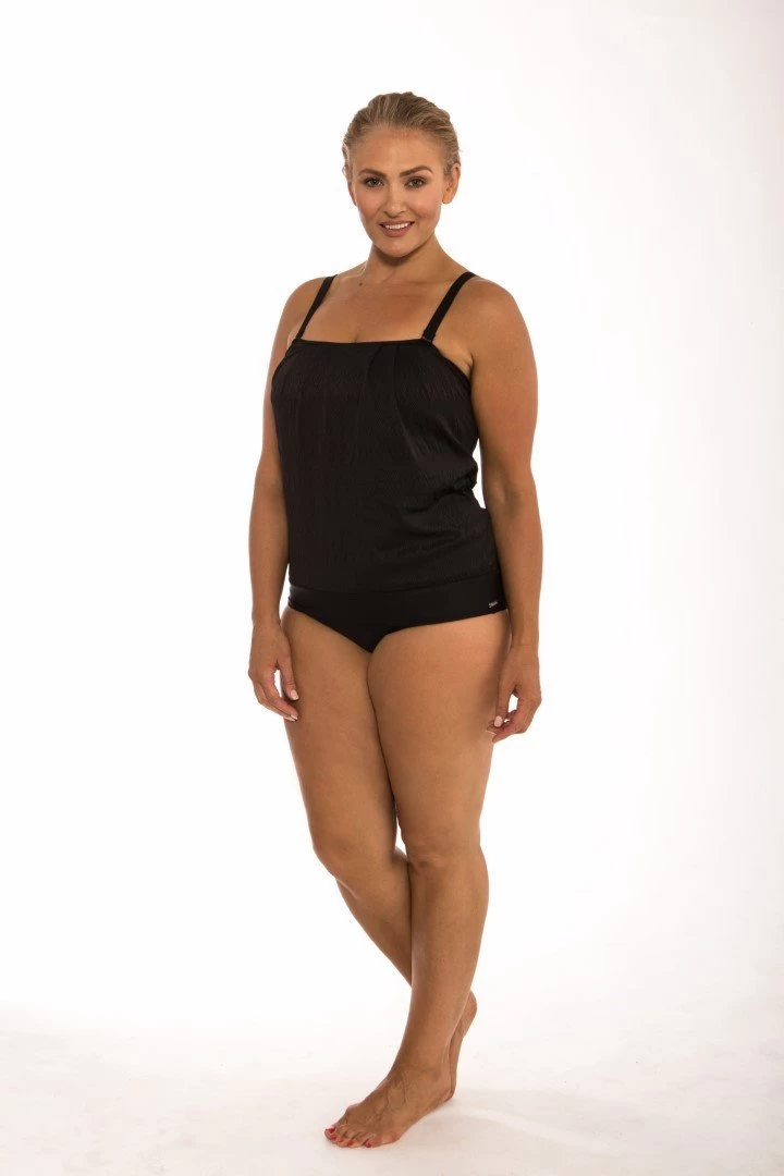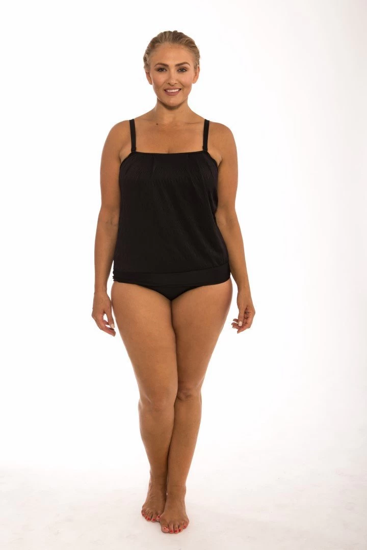 Classique flouncy bandeau tankini. The lovely textured fabric provides superior comfort and stretch, moulded cups for support and shape across the bust, relaxed fit to flatter your curves, plus removable straps for bandeau style. Great coverage across the bust line and under the arms.