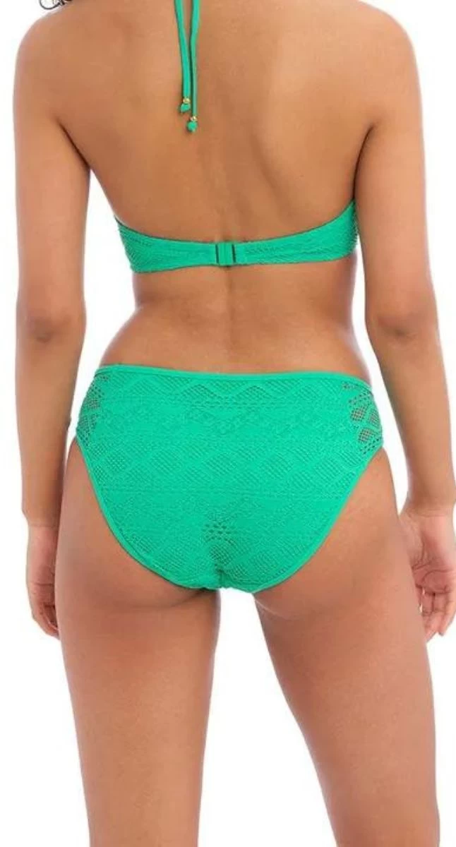 The Sundance hipster bikini pant features textured stretchy lace overlay fabric, fully lined – except for cute see thru hip detail.