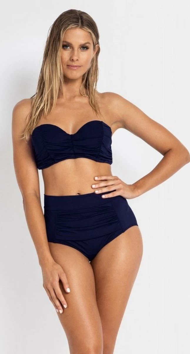 A very flattering high waisted pant with a lovely soft band that dosent cut in, slimming powermesh lining for light tummy control, gentle ruching to skim over any problem areas, fully coverage bottom. Retro beauty!