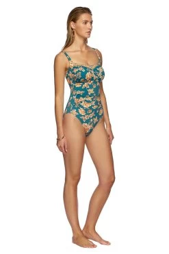 Powermesh fabric has been incorporated in the front of the suit to smooth and flatten the tummy and shape curves.