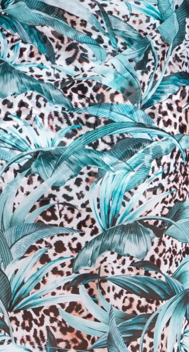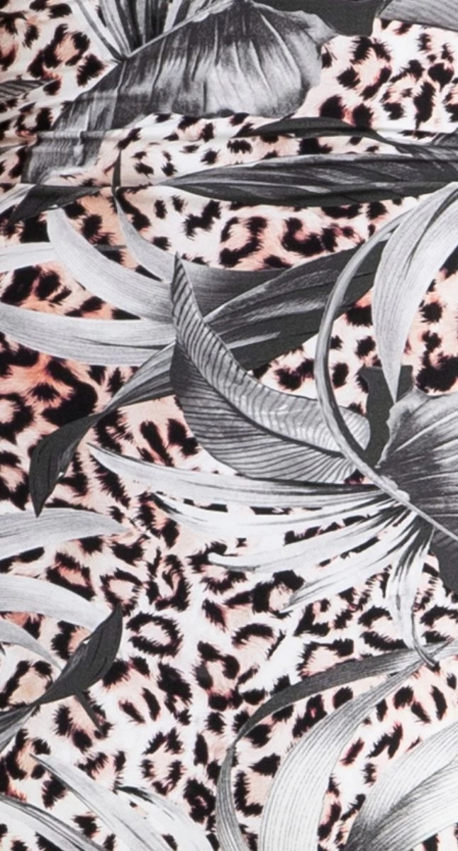 This stunning long mesh sarong by Jantzen Australia is the most beautiful classic animal print overlayed with tonal tropical leaves – perfect to take on your next holiday or wear aroud the pool or beach.