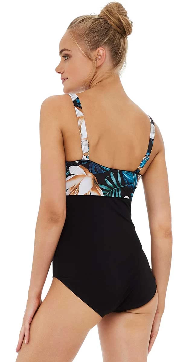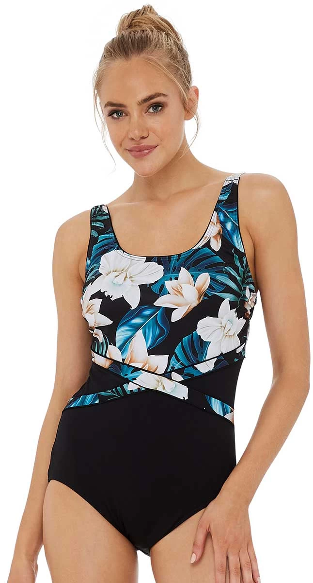 Tropic Champagne printed Chlorine Resistant one piece features wider adjustable straps for a perfect fit, fuller coverage scoop neckline (mastectomy friendly) and moulded cups.