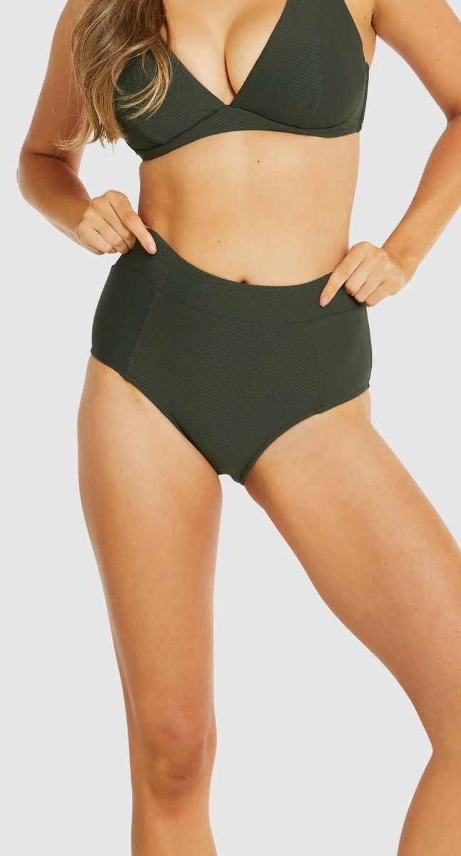 Baku’s Rococco High Waist Bikini Pant features a high waist with a wide soft waist band and Tummy control It has flattering side panels and a full coverage bottom. Rococco is a luxury textural fabrication from Spain that is buttery soft, yet sophisticated and structured.