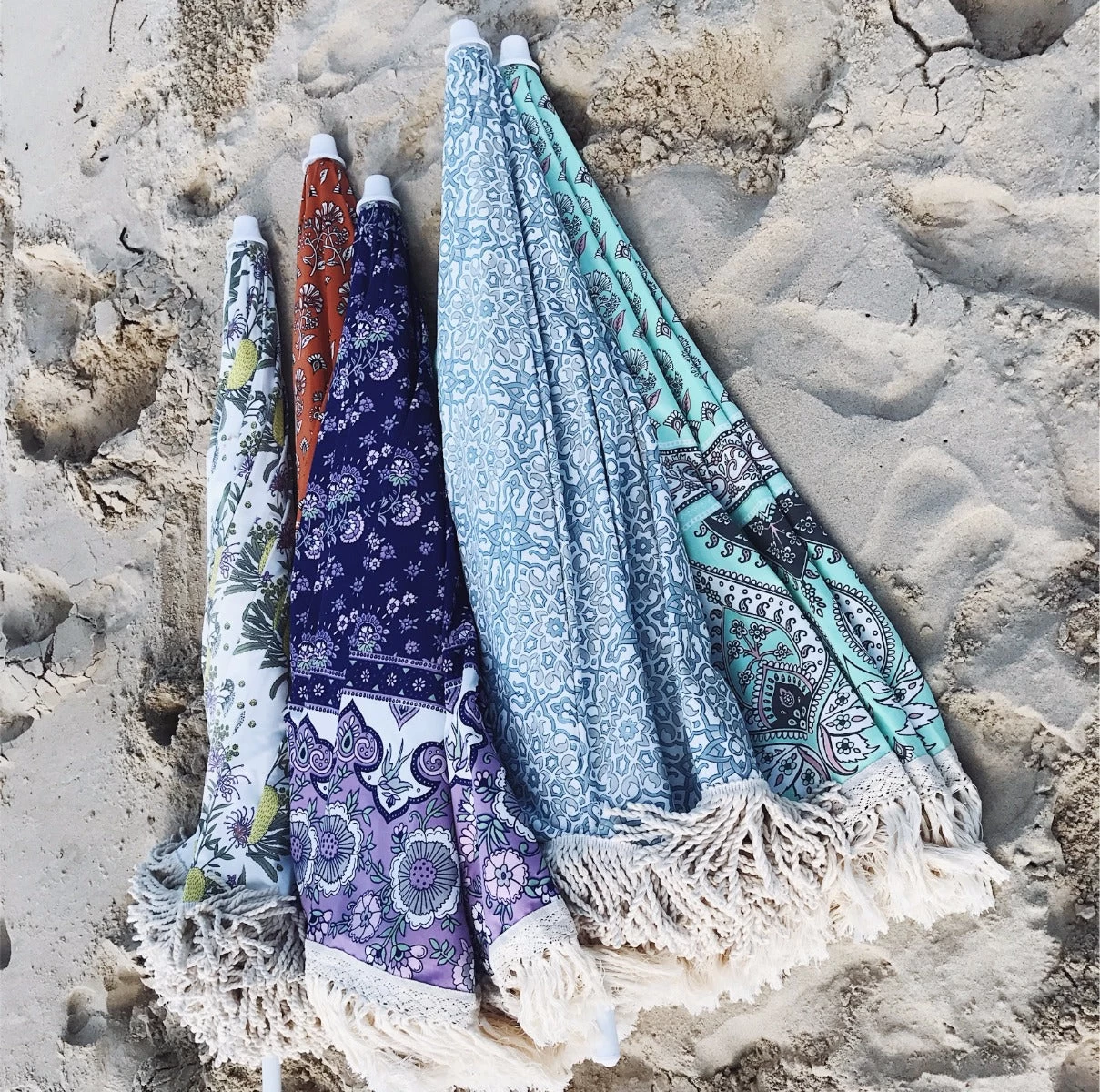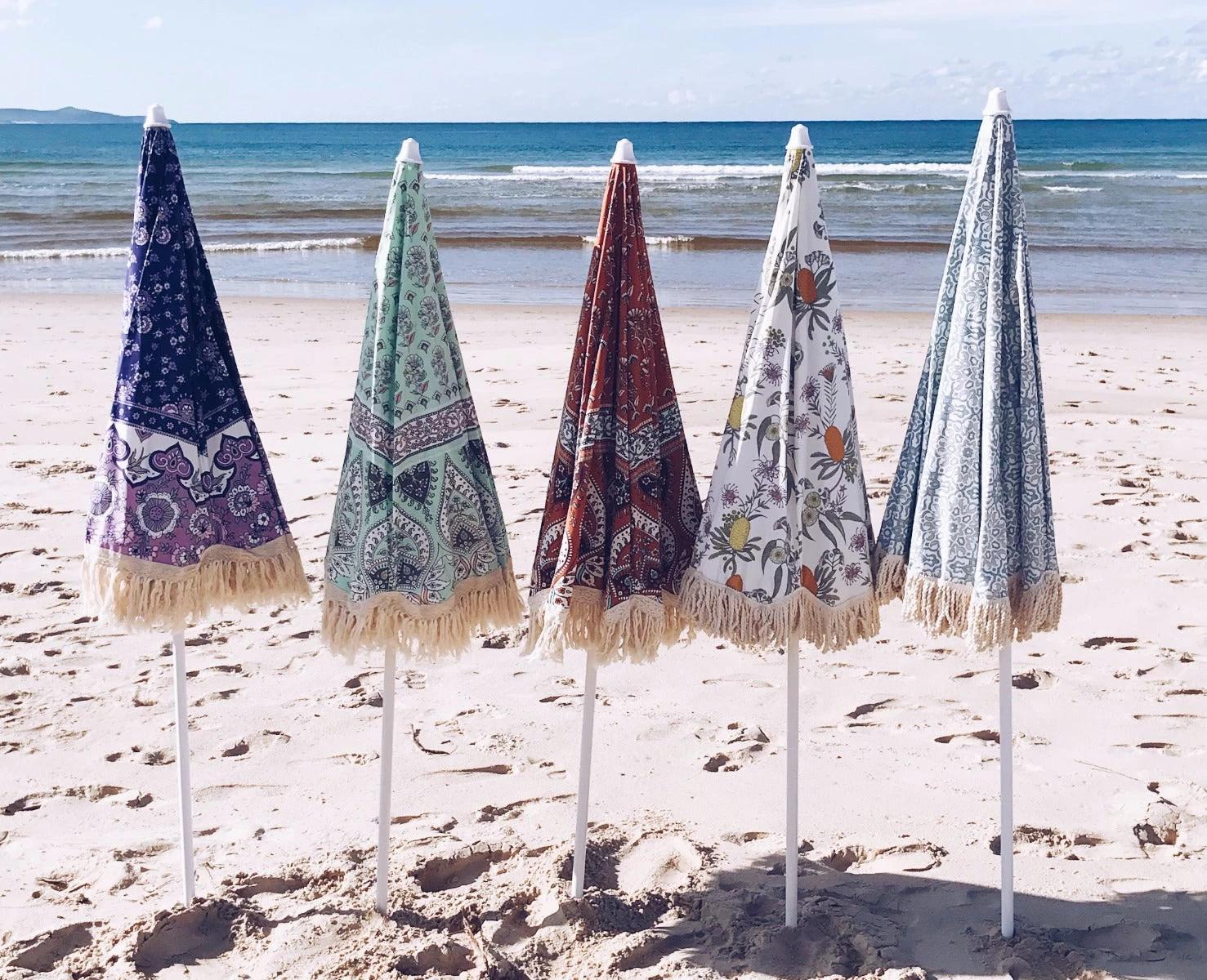 Make a beautiful boho statement on the beach this summer under the shade of this stunning new Maya Beach Umbrella. With a stunning Indian inspired print teamed with intricate lace detailing, this umbrella will be one to treasure and love using all summer long!