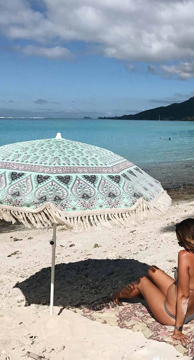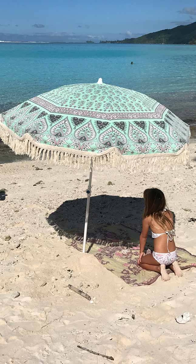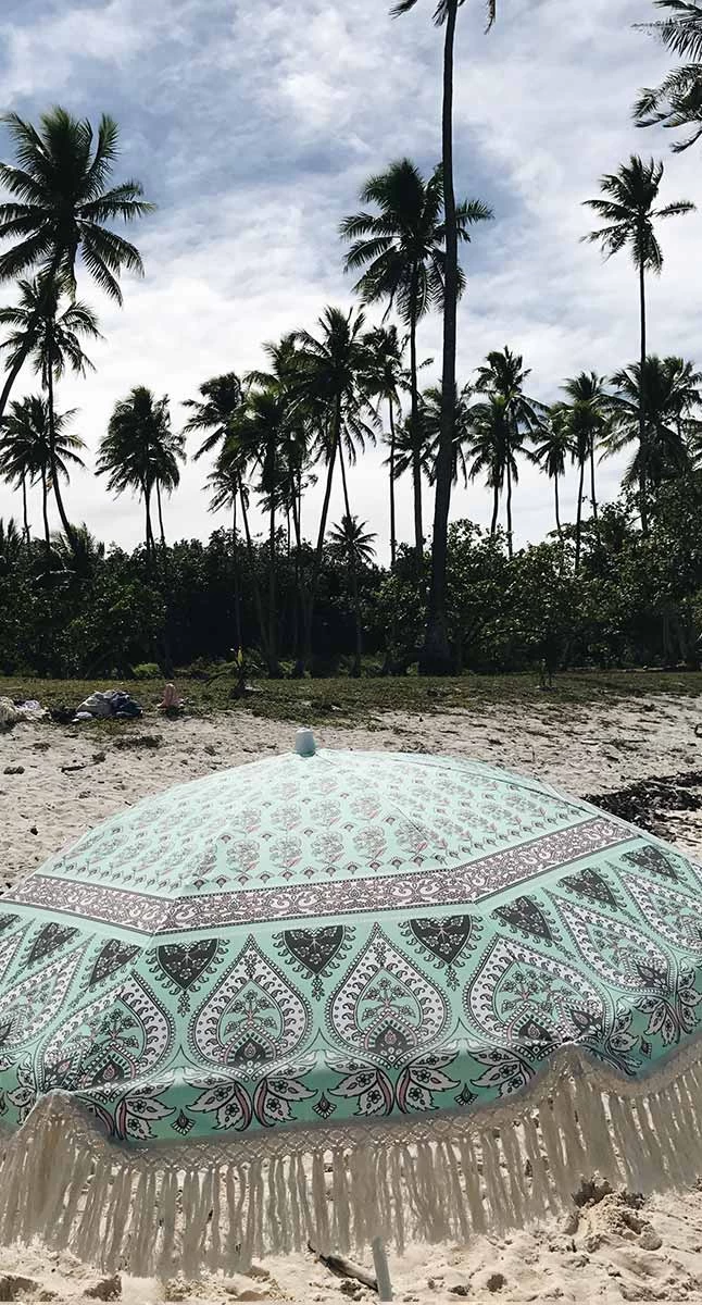 Make a beautiful boho statement on the beach this summer under the shade of this stunning new Zingara Beach Umbrella. With a stunning Mint Green Bohemian inspired print teamed with intricate lace detailing, this umbrella will be one to treasure and love using all summer long!