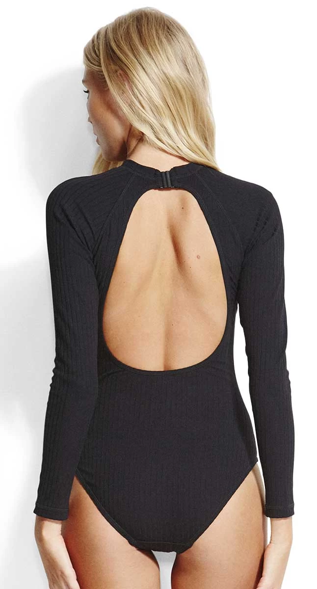 Featuring our beautiful Seafolly textured ribbing fabrication, the Seafolly Inka Rib Long Sleeve Surfsuit one piece is perfect for sun protection and a great choice if you are after more coverage this summer or a swimsuit purposeful for water sports.