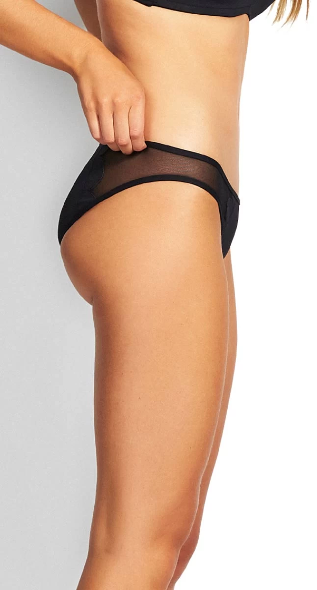 Petal edge hipster bikini pant-Petal edge hipster designed to sit low on the hip and full coverage on the bottom, laser cut petal edge with mesh inserts on the hip, very minimising.