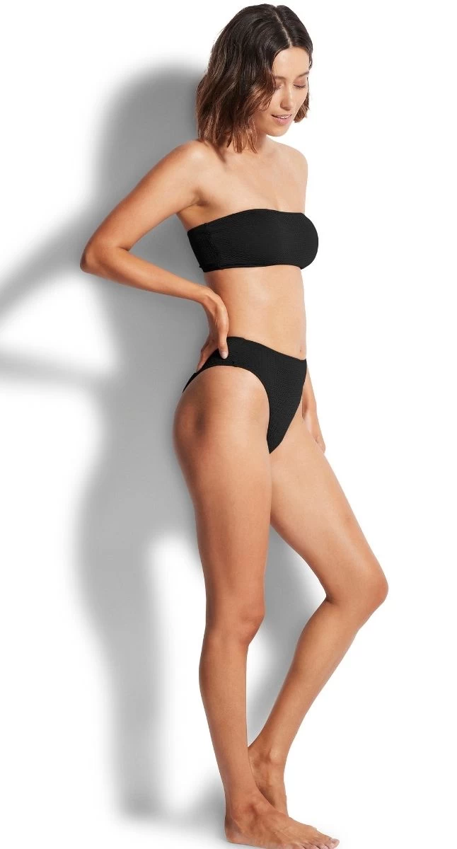 All new Sea Dive, visibly lengthen the legs in the best selling hi rise pant which sits higher on the hip for more tummy coverage, cheekier cut on the bottom. Amazing lux textured fabric for extra stretch + comfort.