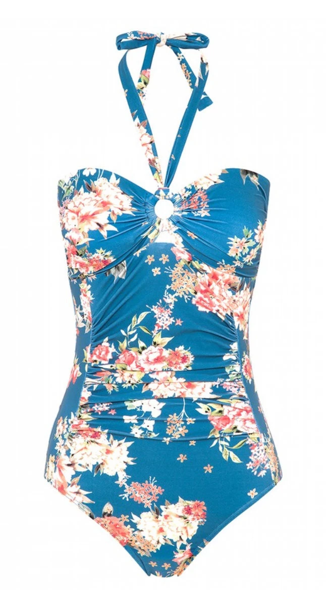| Embrace the feminine florals of Elkwood by Sunseeker Australia. The elegant ring front bandeau features soft halter strap, gentle gathered front to skim over the tummy, high back, funky ring front with peek-a-boo detail. Best for A-C cup fittings. 78% Nylon – 22% Elastane |