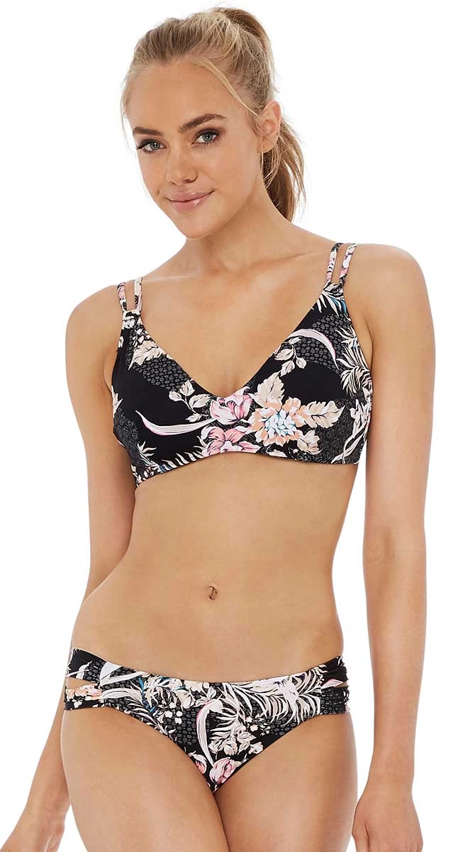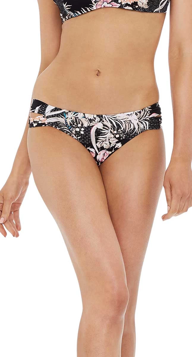 The Paloma side band pant offers regular to medium coverage across the bottom and hips, sporty split band detail, fully lined.